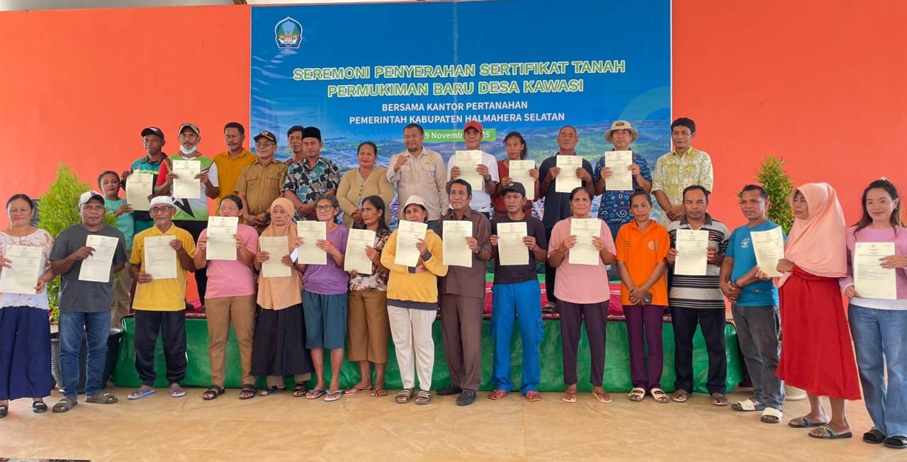 HALSEL, BRN – Pemerintah Kabupaten Halmahera Selatan menyerahkan 28 sertifikat kepemilikan tanah bagi warga Permukiman Baru Desa Kawasi.